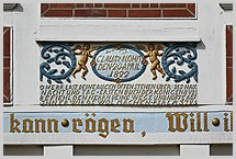 einer Haustafel über dem Eingang; giebelständiges niederdeutsches Hallenhaus aus der