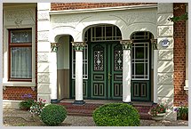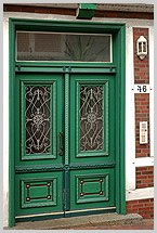 um 1900; zuerst Moorende 46, Zweifüllungstür, Füllflächen-Rahmungen sowie