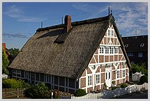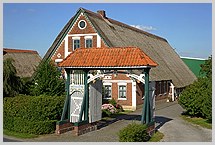 es sich um eine Ersatztür für die ursprüngliche Brauttür; Satteldach mit Reetdeckung,