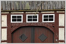 Lüftungsgitter - Nutzung des Gebäudes als Scheune ?); quer geteiltes Dielentor aus