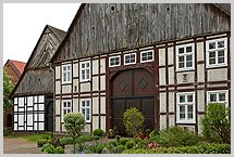 zentralen Dorfbereich (ehemals Rundling); niederdeutsche Hallenhäuser,