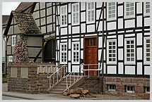 Höxter; Westfalen), Pyrmonter Straße; saniertes Fachwerk-Wohnhaus,