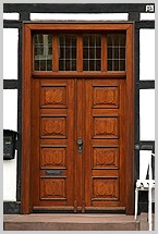 Ziegelmauerwerk; schöne zweiflügelige Haustür aus Eichenholz als Vierfüllungstür