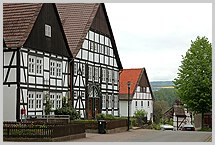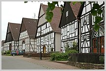 historischen Dorfes an der Karlshafener Straße; giebelständige niederdeutsche Hallenhäuser,