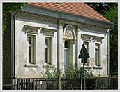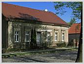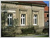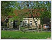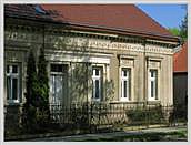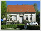 (datiert über dem Eingang) in der Tradition der fünfachsigen märkischen Doppelstubenhäuser; symmetrisch