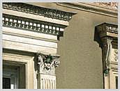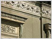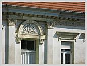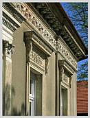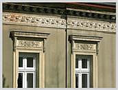 gegliederte Putz-Stuck-Fassade der Gründerzeit / Historismus in spätklassizistischen Formen, Mittelrisalit