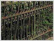 passend zur Bauzeit des Gebäudes; schmiedeeiserne zeittypische Einfriedung incl. Gittertür