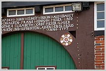 auf dem Torbalken (Bauherrschaft, Zimmermanns-Monogramm M$J.), Erbauungsjahr