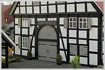 größerer Form wieder aufgebaut wurde; Fachwerkbau als