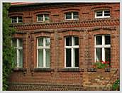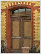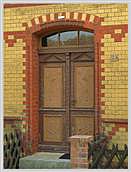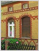 und Formziegel, durchlaufendes Sohlbankgesims; Haustür- und alle