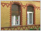 gefüllt, Fenster als Segmentbogen-Fensteröffnungen mit Ziegeleinfassung