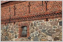 Torpfeiler mit Ziegelkanten, komplett nach historischem Vorbild erneuert; zum