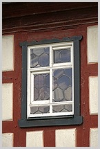 Butzenscheiben), der Konstruktion nach barocke Doppelkreuzstockfenster