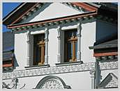 Segmentbogengiebeln, neue Fenster in Anlehnung an historische Vorlage; Schieferdeckung