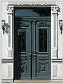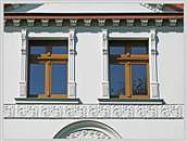 Putz-Stuck-Fassade des Historismus; portalartiger Eingangsbereich im