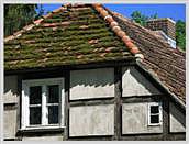 Satteldach mit alter roter Biberschwanz-Kronendeckung (Segmentschnitt,