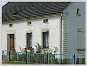 der Normalfenster; neue Haustür; nicht ursprüngliche vierflügelige Fenster mit Kämpfer; Satteldach mit
