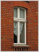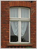 Kellerfenster mit Ziegeleinfassung, Drempelzone mit Schmuckfries (dieser