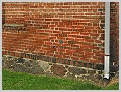 saniertes und teils rekonstruiertes Ziegelsichtmauerwerk (im Verband