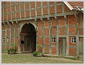 Torbalken; Durchfahrtsscheune gegenüber dem Haupthaus; alle Gebäude saniert,