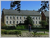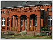 gegliederter Massivbau in Ziegelsichtmauerwerk ("Backsteinfassade"),