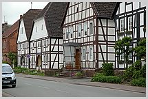 niederdeutsche Hallenhäuser (Wohn-Stall-Speicher-Häuser) mit