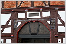 durch Ziegelsichtmauerwerk; das straßenseitige Fachwerk und die