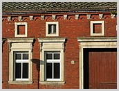 Ziegellisenen (Ecklisenen), alle Fenster- und Türöffnungen mit flachen