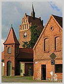 / rekonstruierte Kirchturm der Dorfkirche von Legde mit Blendengiebel
