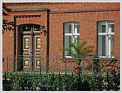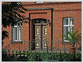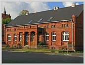 um 1900 mit Zwerchgiebel; Massivbau aus Ziegelsichtmauerwerk (im Verband