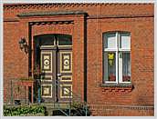 Segmentbögen; ursprüngliche Haustür mit Oberlicht, Zweifüllungstür mit