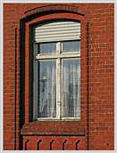 Metallsprossen-Fenstern; Segmentbogen-Fenster im Erdgeschoss teils