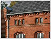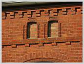gemauerte "Backsteinfassade"), Zierformen aus Normalziegeln, Halbziegeln