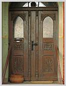 eingezogene spitzbogige Türlauben mit Jugendstil-Türen, incl.