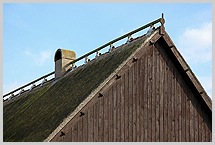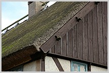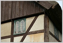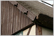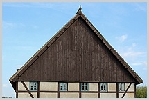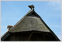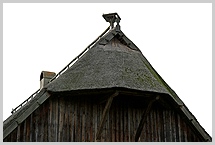 Nachbauten in Anlehnung an historische Vorbilder; Satteldach mit Reetdeckung und Windbrettern, beide