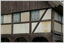 Elsass wurden Klebdächer / Simsdächer an den Fachwerkhäusern angebracht zum Trocknen