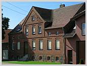 dicke Farbbeschichtung nicht erkennbar); Bauernhaus mit Ziegelfassade, portalartig