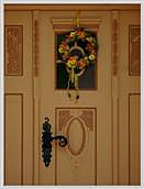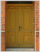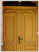 dazu die Haustür als zweiflügelige Füllungstür mit zwei Schlagleisten und schmalem