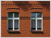 "Krampfaderfugen"), Fenstereinfassungen und Gebäudeecken aus Sichtziegelmauerwerk;