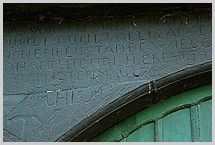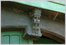 Setzholz als senkrechter Anschlag für die ursprünglich vorhandenen Torflügel); das gesamte Torgebinde verziert mit