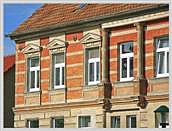 Gründerzeit mit vorgesetzter Schaufassade; rotes