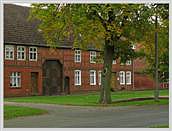 Altenteiler; Fachwerkbau mit Ziegelausfachung auf Feldsteinsockel, beide