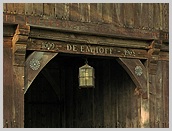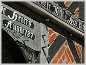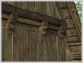 Schnitzereien auf Giebelbalken, Torbalken, Düssel usw. stammen vom Anfang des 20.Jahrhundert