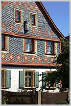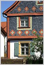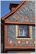 Unterfenstern mit Schlagleiste; Biberschwanz-Kronendeckung (Wiederverwendung von Altbibern);