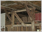 Stich-Deckenbalkenlage, Balkenköpfe auf Knaggen; Halbwalm (Kröpelwalm, Krüppelwalm) mit