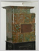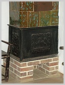 Wohnstube (Dönz) mit Alkoven (Butze) und Hinterlader-Ofen (Beheizung und Rauchabzug über das