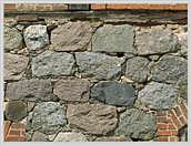 Ziegel-Naturstein-Mischmauerwerk / Fachwerk, Natursteinmauerwerk teils