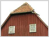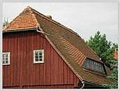 Biberschwanz-Doppeldeckung, Giebeltrapez verbrettert (Schalung mit Verleistung); Aufnahmedatum: 6.9.2008