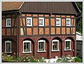 (? - Giebelbalken jedenfalls links verlängert), heute mit unverputzter Ziegelausfachung,