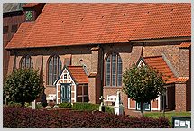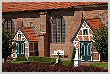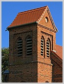 Backstein erneuert; an der Südseite kleines gestuftes und leicht spitzbogiges